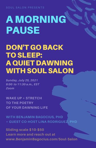 Join us! For more information and to pop in, please visit the "Soul Salon " menu link above, or send me an email: https://benjaminbagocius.com/contact